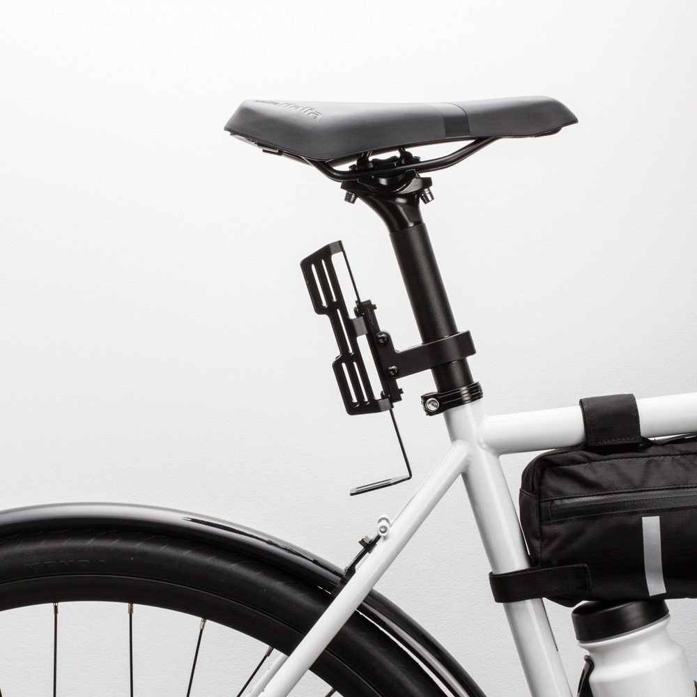 The L-bracket helps prevent the attachment from dropping and can also limit its lowest position to prevent it from scratching the bike frame or getting too close to moving parts when setting up.