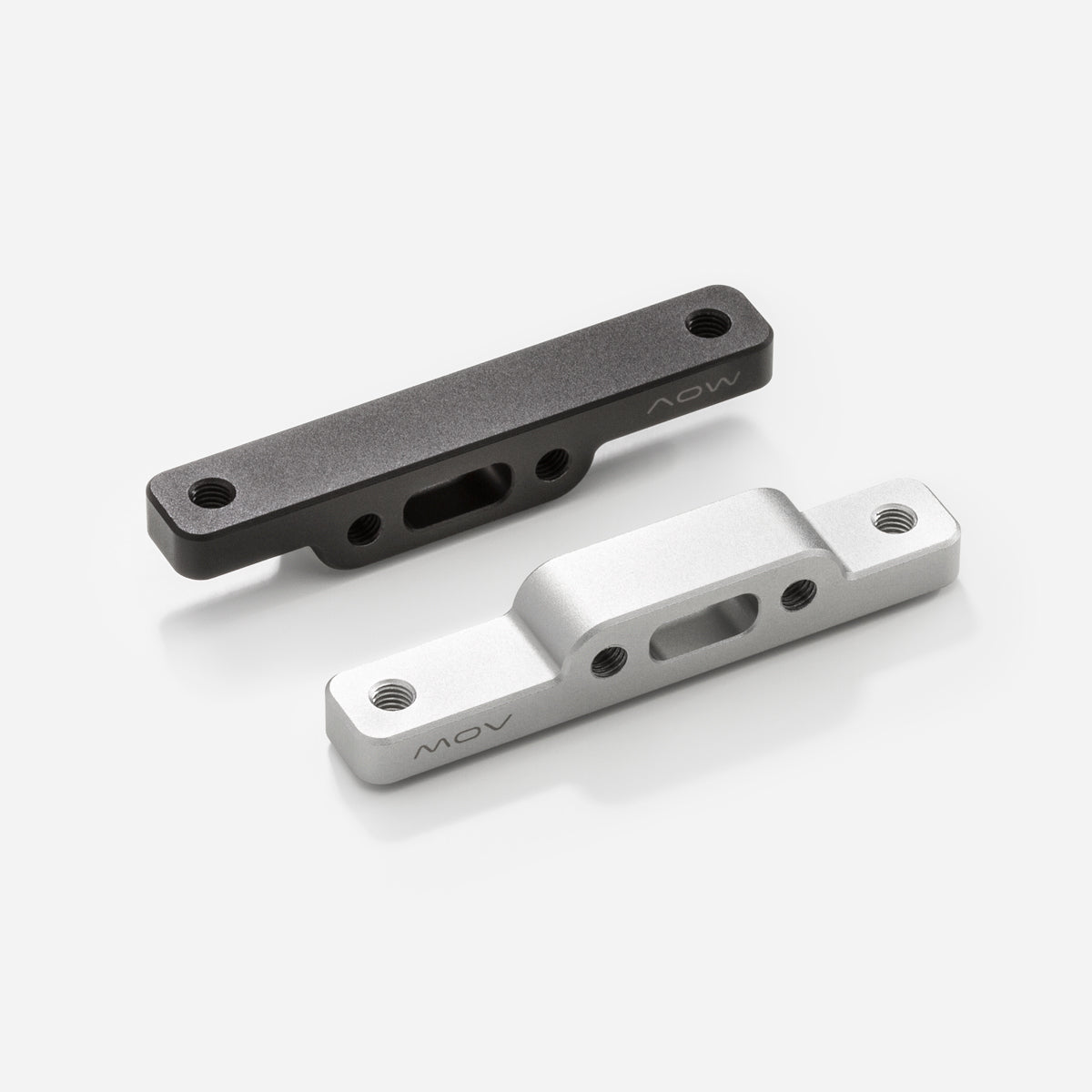 The Mini Mount adds a minimal weight to the BASE Clamp, to hold a 2-hole bicycle water bottle cage, MOV Compact Rack, or accessory designed to install at standard double M5 screw bosses on bike frames.