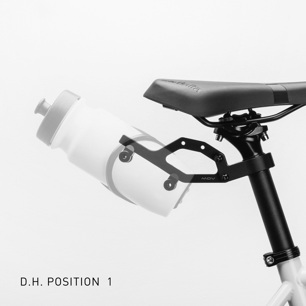 When space is insufficient to use with a setback seat post and backward saddle, user can switch the D.H. setting for a lower bottle angle or move the whole M.M.S. to a lower position.