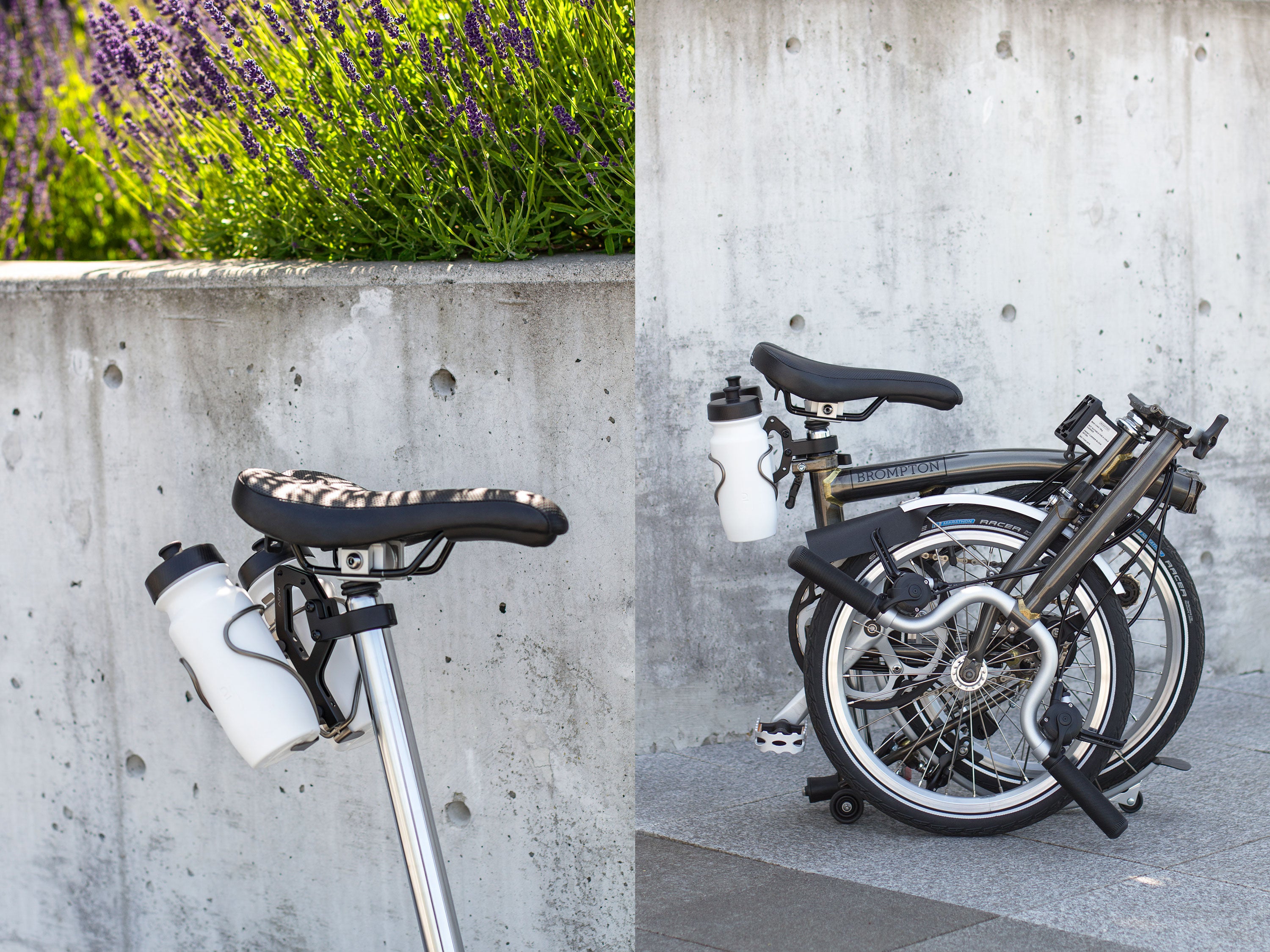 Use with the Ø31.6/8 Base Clamp, Brompton users can enjoy the flexibility of storing extra bottles behind the saddle, before and after folding.