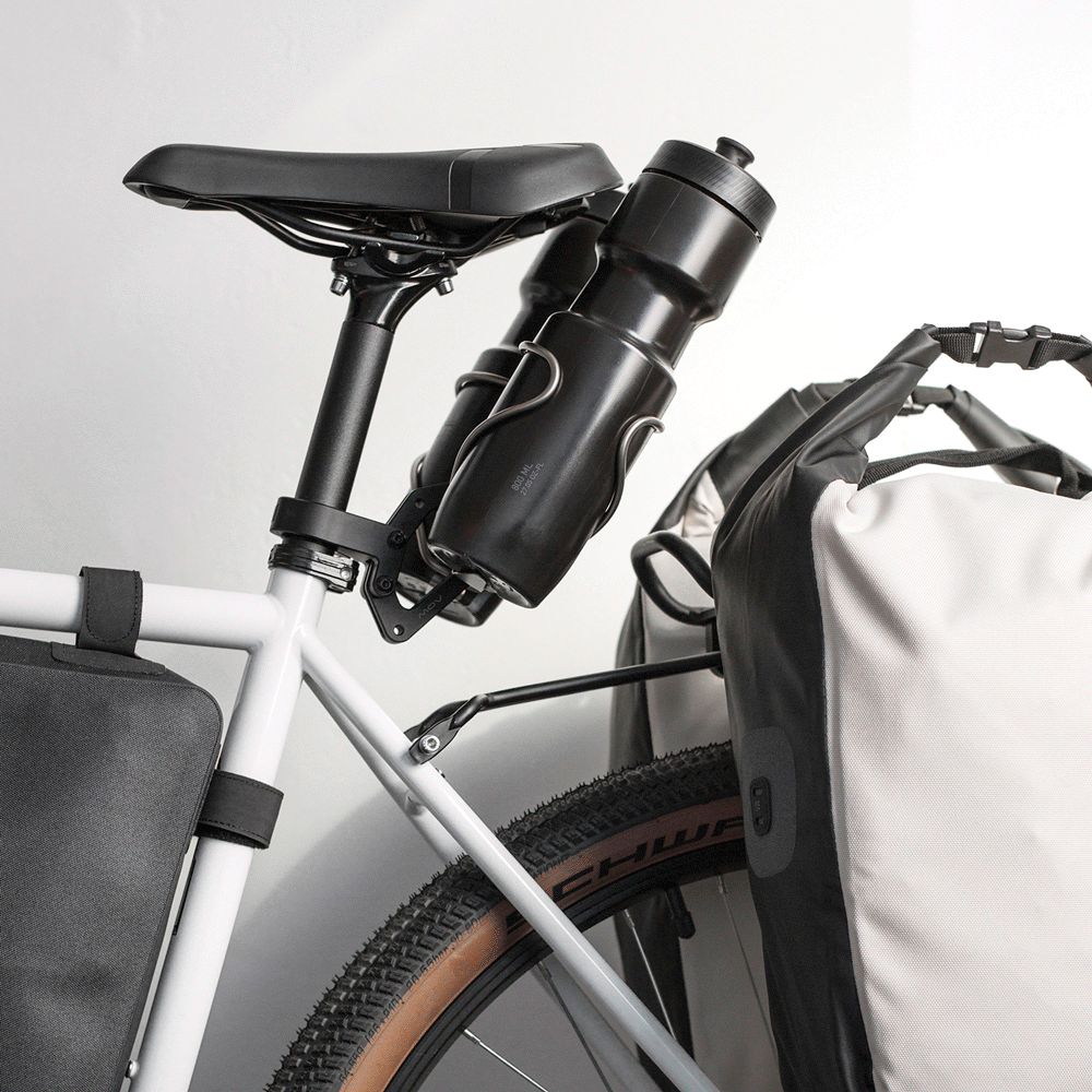 Small and large bottles can also be fitted behind the seat post with a rear rack and bags installed.